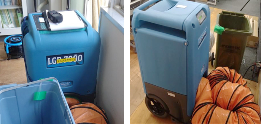 施工内容:水分・湿度測定、送風、排水・除湿、乾燥、防カビ消毒