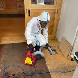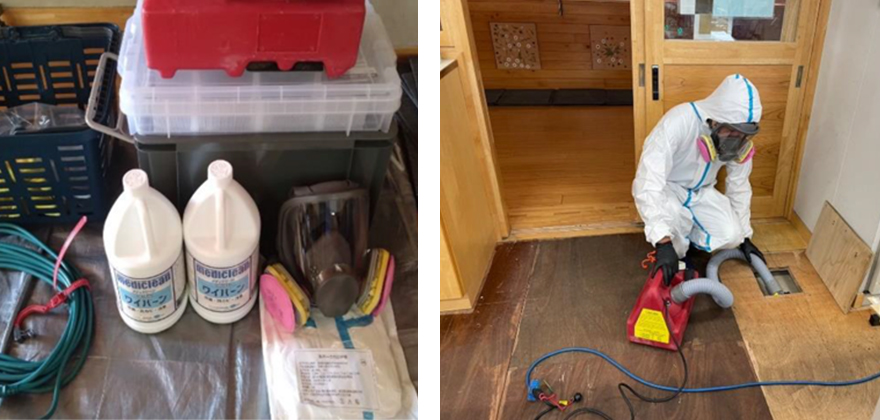 乾燥後、床下に防カビ消毒の噴霧作業を実施しました。
